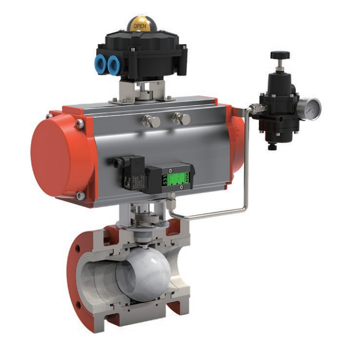 氣動(dòng)耐磨陶瓷球閥V型球閥閥芯設(shè)計(jì)成帶有特殊開(kāi)關(guān)的V型缺口,流通能力大,壓力損失小,并具有精確的截流特性和控制功能,流量特性為近似等百分比。啟閉件采用V型球缺結(jié)構(gòu),完全解決了閥腔易沉積介質(zhì)的