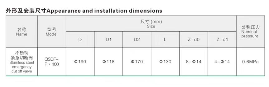 QSDF-P不銹鋼氣動(dòng)海底閥--技術(shù)參數(shù)